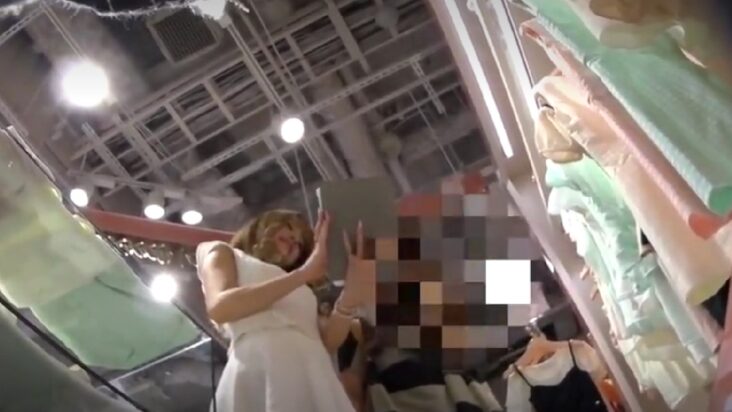 お姉さん 目がクッキリなきれいなお姉さん☆服を説明している隙にスカートの中にカメラを突っ込み逆さ撮り♪