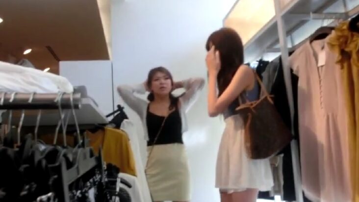 お姉さん 服屋さんでギャル2人を発見☆エロそうな服装ですがスカートにカメラを突っ込むと清純なパンティー♪