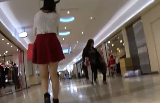 かわいいセミロングのJDのパンチラを逆さ撮り!?ゆらゆ赤いスカートの奥には!?