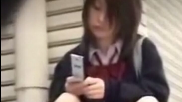 制服のJKのしゃがみパンチラを激写☆足を広げてるので丸見えに!ズームでパンティーがあらわに♪